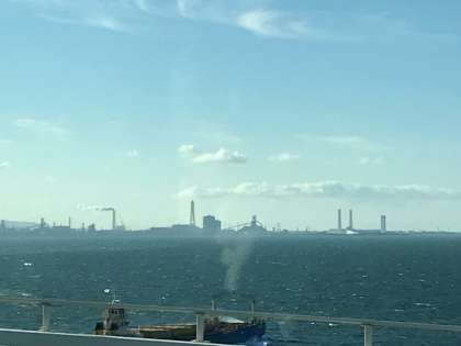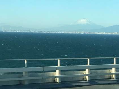 東京湾アクアラインから見た富士山と新日鐡住金の工場の遠景です。
