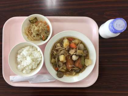 今日は、ごはん、じゃがいものうま煮、大根とじゃこの、カリカリサラダ、牛乳です。