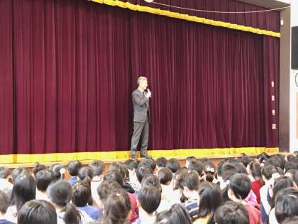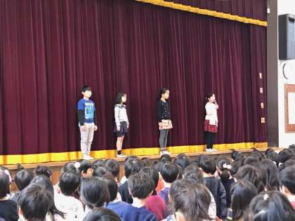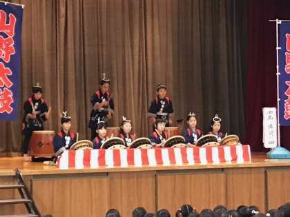 まずは山野太鼓の披露がありました。新春にふさわしい響きでした。校長先生からは、それぞれの学年のめあてを達成しようというお話がありました。児童代表の言葉は4年生です。暗記して発表しました。