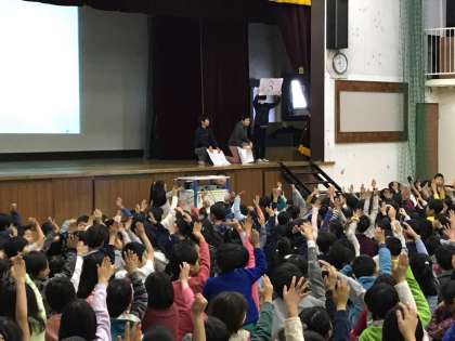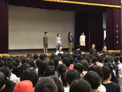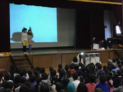 6年生の元気なあいさつの号令の後、シルエットクイズで楽しみました。