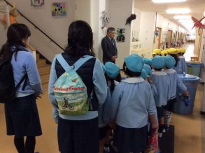あけぼの幼稚園の年長組のみなさんが、山野小訪問に来てくれています。