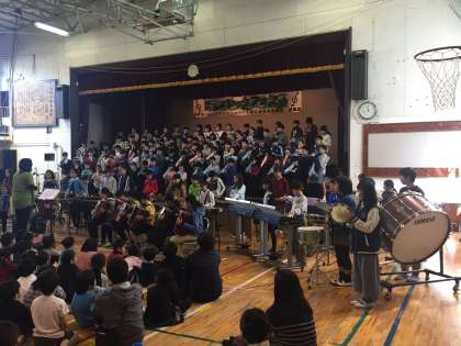 5年生、二部合唱、合奏にも磨きがかかっています。