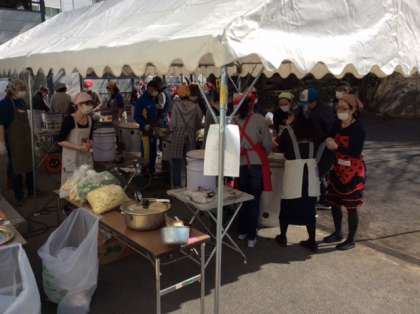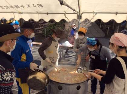 ほごしゃと地域の皆さまが協力して豚汁を作り、全校児童に振る舞ってくださいます。ただいま準備中です。