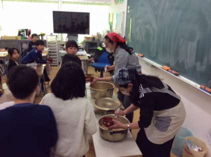 感謝の気持ちをもって、豚汁をおいしくいただいています。