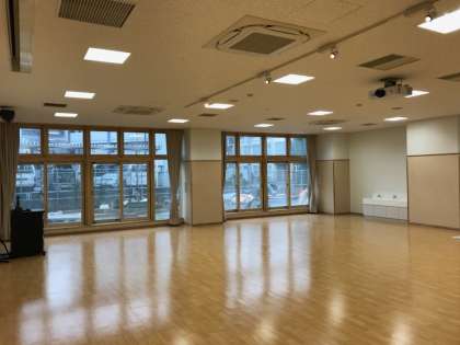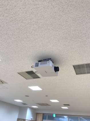 工事も最終段階です。一部をご紹介します。1階の多目的室は、プロジェクターとスクリーンが完備されています。