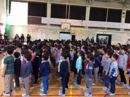 各学年からの出し物です。心がこもった素敵な歌や呼びかけです。