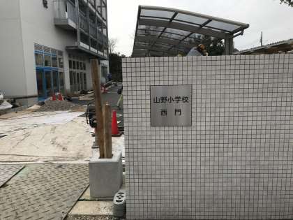 第2校庭側の新しく正門になる門と、城山通りに新設される西門に、それぞれ表札が付きました。