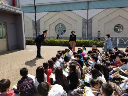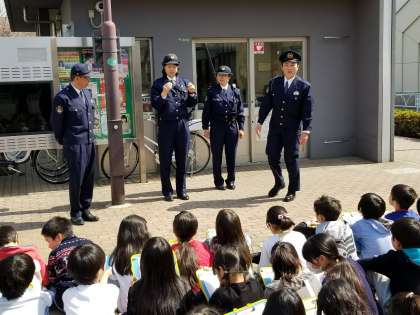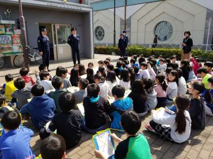 ただ今、3年1組と4組は社会科の学習の一環で、祖師谷大蔵交番に見学に来ています。