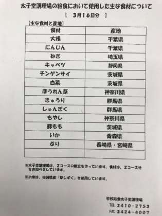 献立は、赤飯、ぶりの照り焼き、こづゆ、おひたし、牛乳です。卒業と進級をお祝いしてのお赤飯なのに、何と写真を撮り忘れてしまいました。今日は新校舎の引き渡しと打ち合わせが続いています。こづゆは、お祝いの時に食べる福島県の郷土料理だそうです。