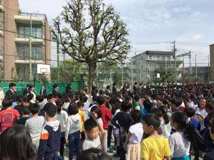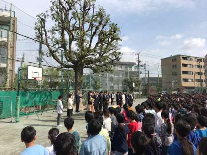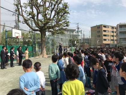 まず、校長先生から、転出、退職された教職員と、転入、新規採用の教職員の紹介がありました。続いて、新しい担任、専科、それぞれの役割の紹介がありました。校長先生からは、山野の約束をしっかりと守って生活していこうというお話がありました。