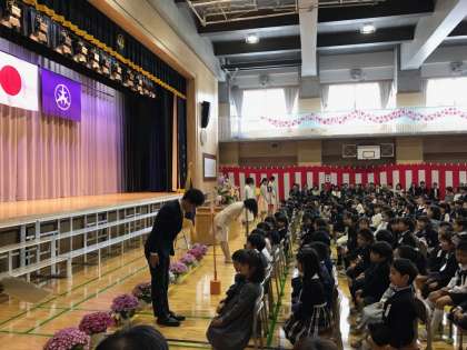 平成30年度の入学式を行いました。6年生にエスコートされて入場した1年生。校長先生からは山野小学校にようこそというお話がありました。担任の先生や教職員の発表のあと、「よろしくお願いします」とあいさつをしました。