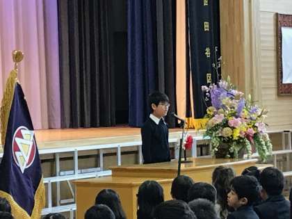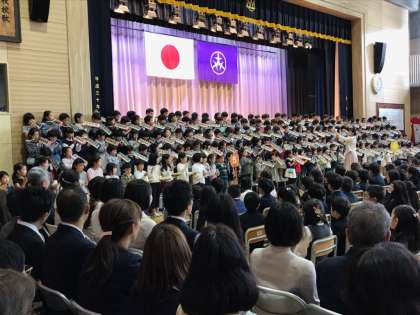 6年生の代表児童からは、山野小の三大フェスタについての話を含めて、歓迎の言葉がありました。2年生からは楽しい歌と演奏の披露がありました。169名の1年生の小学校生活が始まりました。
