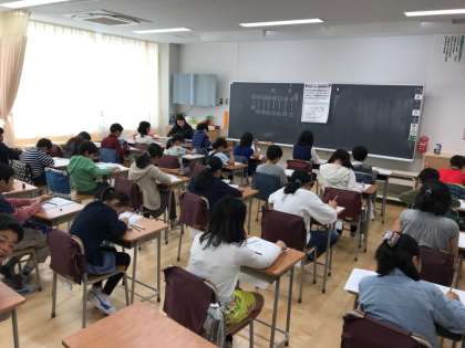 4〜6年生は、今日の午前中、国語、算数、社会、理科の四教科の既習事項が身に付いているかどうかを確かめるテストを行いました。
