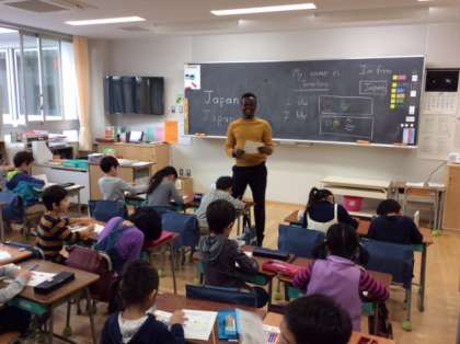 外国語活動の時間です。今年もキース先生が教えてくれます。