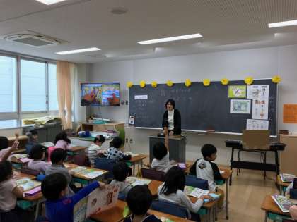 10までのかず。教科書のイラストを見ながら、動物の数を数えています。