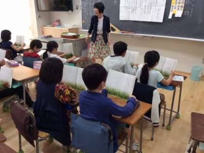 日本語の授業です。詩を音読しています。