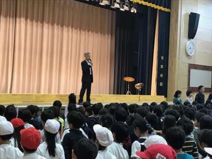 新しい体育館での全校朝会は、初めてです。6年生の気合いの入った号令でスタートしました。校長先生からは、1000名の全校児童が大切に新校舎を使っていることが嬉しい、今後、山野小で学ぶであろう後輩たちのためにも、毎日がんばって過ごしてほしいというお話がありました。