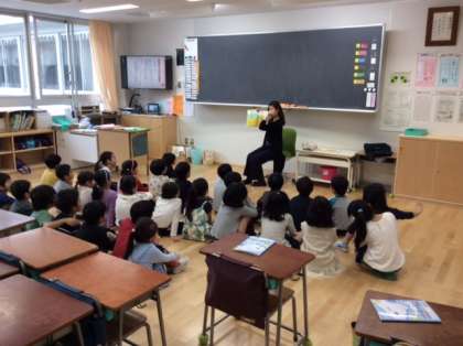 ボランティアに方による、読み聞かせの時間です。2年生の様子です。