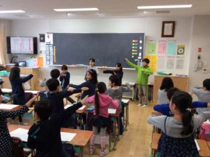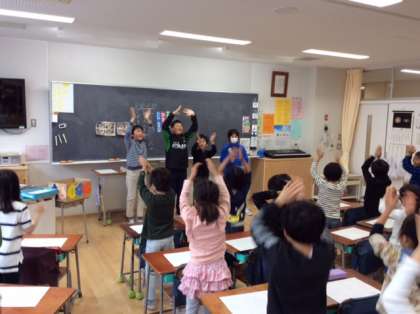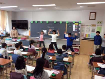 応援団が1年生から3年生の各教室に行き、それぞれのコールなどを教えています。山野小のすてきな朝です。