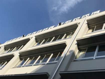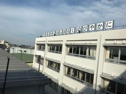いよいよ式典当日です。校庭側の教育目標の看板が取り付けられました。