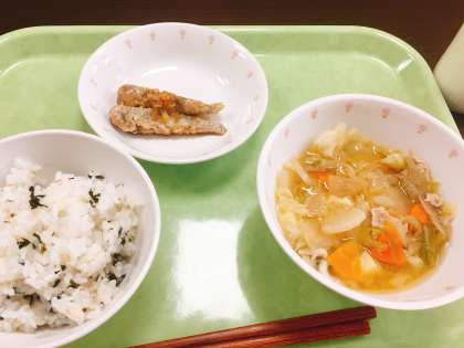 春キャベツの豚汁です。春キャベツは、秋に種を蒔いて、春に収穫されます。高原で生産される夏、秋のキャベツより、葉が柔らかくて、甘みも強いので、汁に入れると、とても美味しいです。