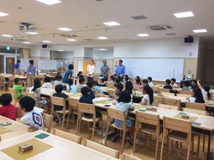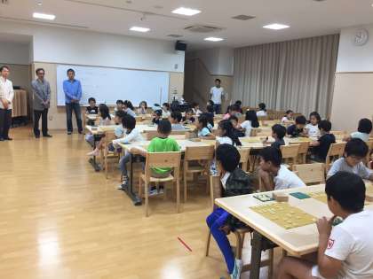 今年度最初の将棋教室です。今回は、2年生と3年生です。将棋を初めてやるという人も、たくさんいます。この中から将来、プロ棋士が出るかもしれませんね。
