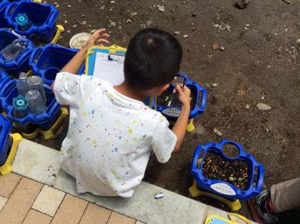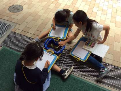 ほうせんかの芽が出てきました。観察は、とても大切な学習です。