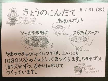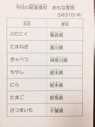 「にらたまスープ」の「たま」は「卵」なのか「玉」なのか。「多摩」ではないと思いますが。玉ねぎも入っているので、「玉」だと思いましたが、こんだて表を見たら「卵」でした。「にらたまごスープ」と読んだ方が良いのかな?