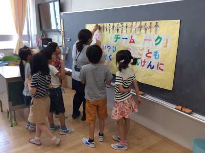 学級活動の時間です。クラス目標が出来上がりました。
