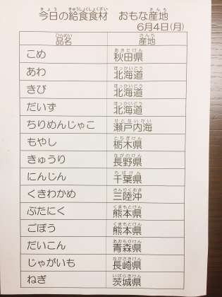 今日は6月4日で、虫の日だそうですが、給食のことなので、虫の話題は無視しちゃいます。