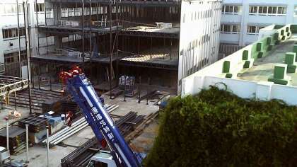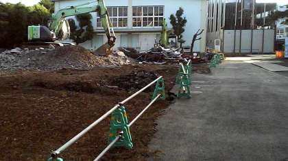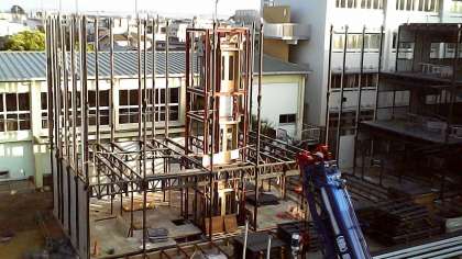 大井さんから解体現場の写真をお送りいただきました。今朝、竹内門から登校してくる子どもたちも「あっ、エレベーターが残っている」と口々に言っていました。