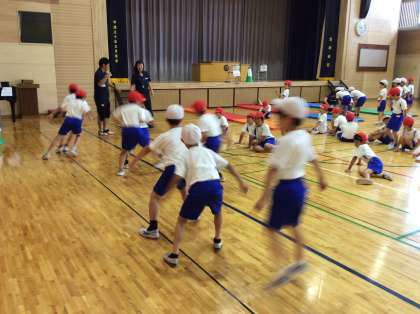 反復横跳びや立ち幅跳びなどに挑戦しています。