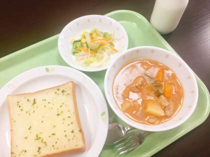 今日は、ガーリックトーストとシチューです。