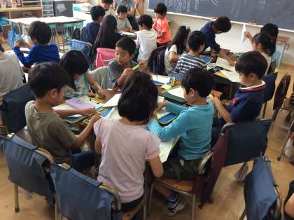 今日の町たんけんでは、多くの保護者の方々にボランティアとして参加していただきました。ありがとうございました。子どもたちは、しっかりとまとめをしています。