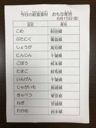 6/15 今日の給食