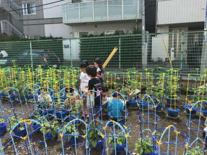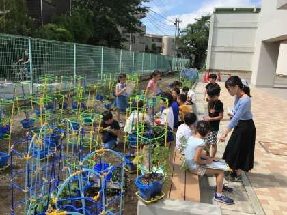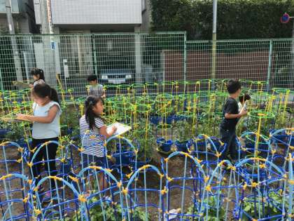 やさいをそだてよう。観察をしています。