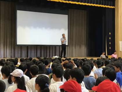 さあ、7月になりました。梅雨も明けて、夏真っ盛りです。6年生の号令で、元気にあいさつをします。校長先生からは、後3週間で、自分の立てた1学期のめあてを振り返り、やり切ろうというお話がありました。