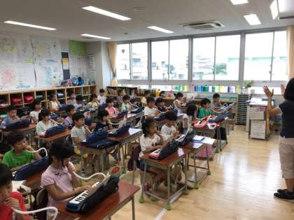3びょうしをかんじて。かっこうを鍵盤ハーモニカで演奏します。