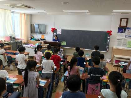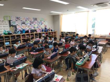 海を歌った後は、鍵盤ハーモニカの練習です。