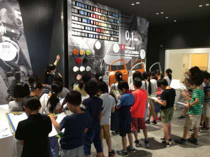 説明を聞いて、真剣にメモを取っています。いろいろな部品を間近に見ることができます。