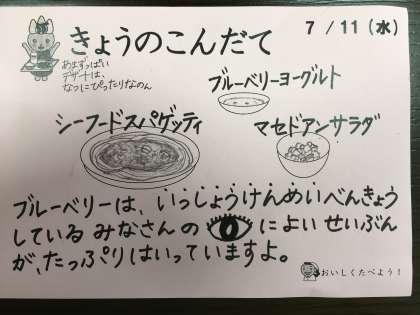 天候不順により、夏野菜が高騰しているとのことです。今日のサラダのきゅうりも、八百屋さんが何とか確保してくれたそうです。