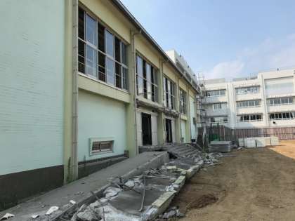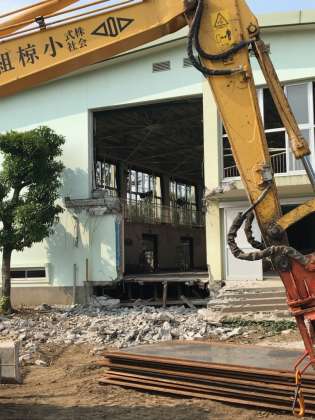 体育館の解体工事が始まりました。現地に入れたので、ご紹介します。