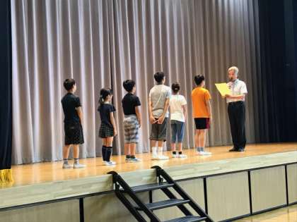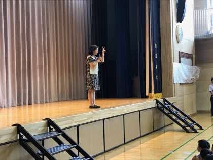 1学期いっぱいで転校する児童の紹介がありました。バレーボールの大会で良い成績をおさめた子どもたちの表彰がありました。最後に生活指導の先生から、安全に気をつけて夏休みを過ごそうというお話がありました。