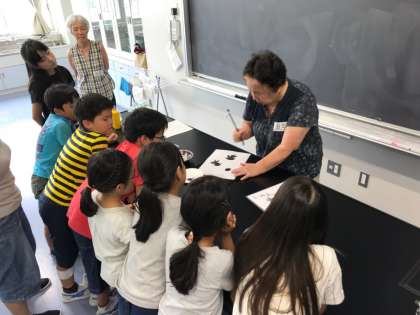 第2理科室では墨絵教室。夏らしい水墨画にチャレンジします。