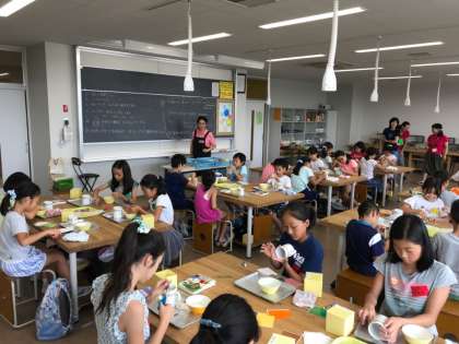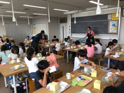 今日の図工室は、ガラスのマグにカラーシートを貼って、デザインし、後日焼き付けます。
