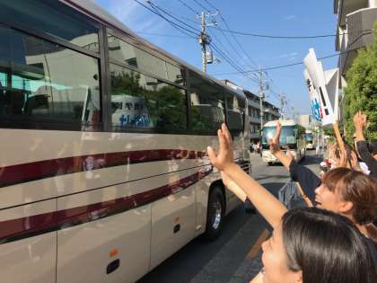 恒例の見送り横断幕が今年も登場。これからは現地レポートをご覧ください。