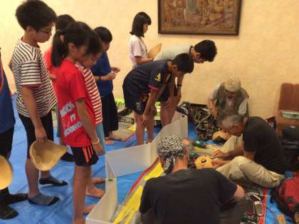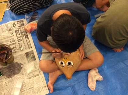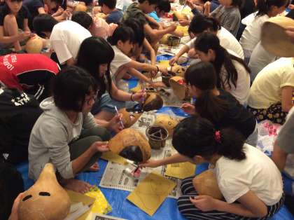ふくべ細工進行中です。個性が出て、楽しい作品ばかりです。