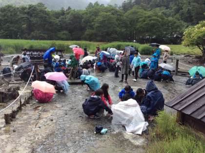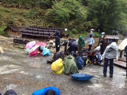 温泉神社では、10円玉を硫黄の温泉につけてみました。