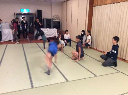 宿舎では、ケミカルダンスパーティのリハーサルが始まっています。