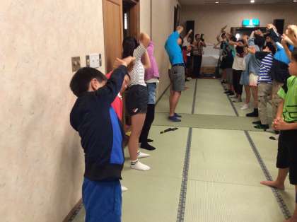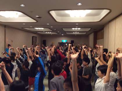 朝会の様子です。みんな元気に3日目の朝を迎えました。
